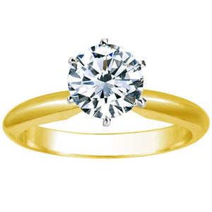 Élégance pure en or jaune : cette bague de fiançailles solitaire est fabriquée en or jaune 14 carats, offrant un cadre chaleureux et radieux pour le diamant taille ronde brillant.