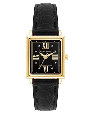 Montre Anne Klein pour femme avec bracelet en cuir vegan effet croco noir/doré