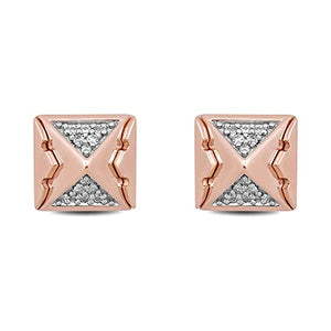 Boucles d'oreilles à tige en or rose 10 carats et argent sterling avec diamant rond blanc naturel 1/10 ct et pyramide Aurora de Jewelili Enchanted Disney Fine Jewelry