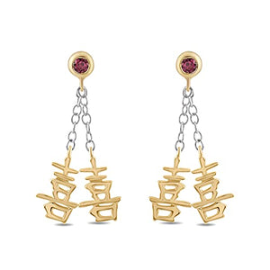 Bijoux Disney enchantés : boucles d'oreilles pendantes en grenat rhodolite Mulan