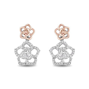 Ces magnifiques boucles d'oreilles présentent une petite fleur en or rose 14 carats avec une fleur en argent sterling sertie de diamants. Inspirée de Belle, la beauté féerique de ce bijou est indéniable. L'éclat subtil en fait un accessoire polyvalent parfait pour habiller une tenue simple ou rehausser un ensemble glamour. Il ne faudra pas longtemps avant que cette paire de boucles d'oreilles devienne le bijou de prédilection de votre chéri. Couleur : or rose.