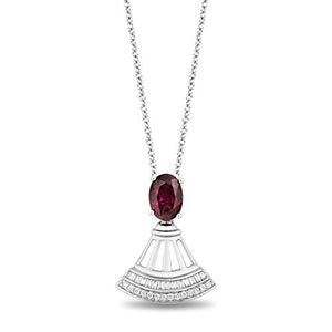 Collier avec pendentif Mulan en argent sterling de 8 x 6 mm de forme ovale avec grenat rhodolite et diamant rond blanc naturel de 1/4 ct, chaîne de câble de 18 pouces