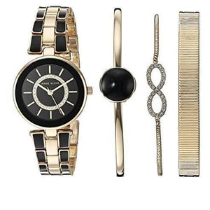 Gold/Black Anne Klein Women's AK/3286BKST Swarovski Crystal Accented Gold-Tone and Black Watch and Bracelet Set, perfect style for you