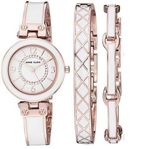 Anne Klein Women's AK/3296WTST Swarovski Crystal Accented Rose Gold-Tone and White Bangle Watch and Bracelet Set - Watches - 4aShopOnline