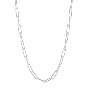 This necklace has paper clip like shapes with a polished texture facade, contrast it with the matte version for an avant-garde style. Necklace measures 16 inches long, plus a 2-inch extender for adjustable length, and features a lobster clasp. Piece comes with a ".925" sterling silver quality stamp as a symbol of guaranteed product quality. Made in Italy.