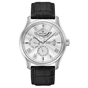 Bulova Classic 6 Hand, Power Reserve Mens Watch, Stainless Steel with Black Leather Strap, Silver-Tone (Model: 96C141)