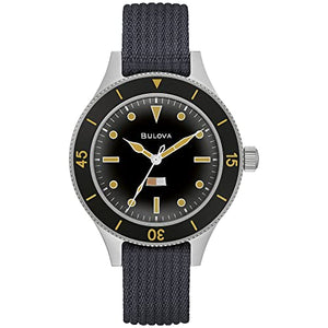 Bulova Men's Archive Series MIL-SHIPS-W-2181 Stainless Steel 3-Hand Hack Automatic Watch, Grey Nylon Strap and Black Matte Dial Style: 98A266