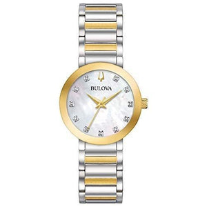 Shine bright with this Bulova Modern Quartz Ladies Watch, Stainless Steel Diamond , Two-Tone (Model: 98P180).