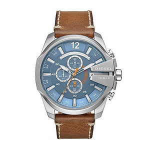 Features of Diesel Men's Mega Chief Stainless Steel Japanese-Quartz Watch with Leather Calfskin Strap, Brown, 26 (Model: DZ4458)