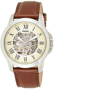 Fossil Men's Grant Auto Automatic Leather Three-Hand Watch, Color: Silver, Brown (Model: ME3099)