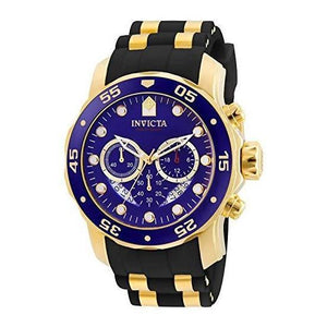 Invicta Men's Pro Diver Scuba 48mm Gold Tone Stainless Steel Quartz Watch with Black Silicone Strap, Blue (Model: 6983)