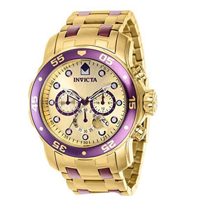 Plunge into any horizon using the steadfast guidance of this gold & purple Invicta Pro Diver.