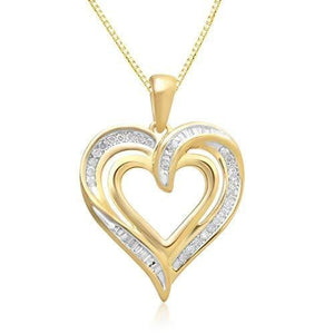 - Heart Pendant Necklace in 14K Yellow Gold Plated Sterling Silver with 1/4Cttw Natural White Round and Tapper Baguette Diamond, 18'' Box chain