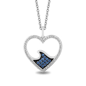Officially Licensed Disney Jewelry - Enchanted Disney Fine Jewelry Moana Heart Pendant Necklace in Sterling Silver 1/4 Cttw Treated Blue and Natural White Round Diamond.