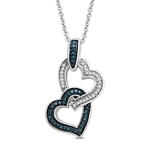 - Jewelili Sterling Silver 1/6 CT Treated Blue and Natural White Round Diamond Double Heart Pendant Necklace , 18" Rolo Chain. Dimension: W: 14.4MM L: 28MM H: 3.8MM. Item is shipped in a beautiful gift box. Return on any order within 30 days