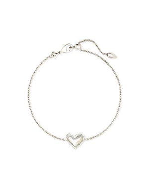 • Colorful Stone Detail: Kendra Scott is known for incorporating color into their designs, and the Ari Heart Link Chain Bracelet is no exception. The Ivory Mother of Pearl heart stone adds a perfect pop of color.