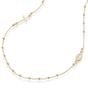 Show your spiritual side with this MiaBella 18K Gold Over Sterling Silver Italian Rosary Beaded Sideways Cross Necklace, Link Chain 16, 18, 22 Inch for Women Teen Girls 925 Italy (16 Inches).