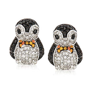 Ross-Simons 0.80 ct. t.w. Black and White CZ Penguin Earrings in Sterling Silver