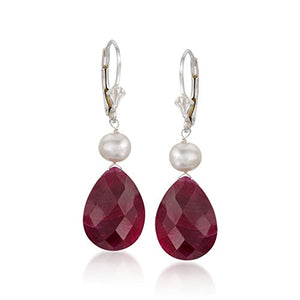 Features of Ross-Simons 20.00 ct. t.w. Ruby and Cultured Pearl Drop Earrings in Sterling Silver