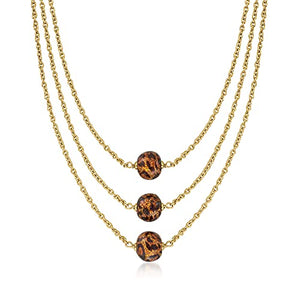 From Italy, a multi-strand necklace drops three leopard-print Murano glass discs from 18kt yellow gold over sterling silver cable chains in three layers. Includes 2" extender. Murano glass is unique and may vary. Lobster clasp, leopard-print Murano glass multi-strand necklace. Each Ross-Simons item arrives in a fine jewelry presentation box. Shop Ross-Simons jewelry risk-free as all items include a 30-day, 100% money-back guarantee. Color: Gold.