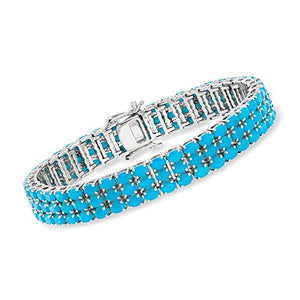 Features of Ross-Simons Turquoise 3-Row Tennis Bracelet in Sterling Silver. 7 inches