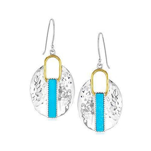 Two-tone is always a flawless look, this time, a strip of brilliant blue enhances the gorgeous style in these Ross-Simons Turquoise Drop Earrings in 2-Tone Sterling Silver.