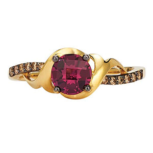 Indulge in the allure of the LeVian 14K Yellow Gold, 8mm Rhodolite Garnet & 1/10 Cttw Chocolate Diamond Filigree Bypass Ring. This exquisite piece is a true testament to craftsmanship and sophistication, making it the perfect gift for yourself or a loved one.