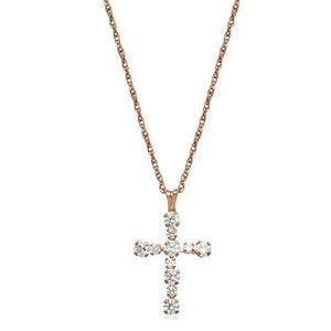 Create a special gift for yourself or people you love with this Jewelili 10K Rose Gold 2mm and 3mm Round Signity White Cubic Zirconia Cross Pendant Necklace, 18" Rolo Chain.