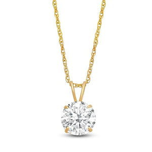 Jewelili 10k Yellow Gold Solitaire Pendant Necklace Set with Round Cut Cubic Zirconia, 18" Rope Chain