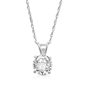 Indulge in the sheer brilliance of the Jewelili Solitaire Pendant Necklace, a masterpiece crafted to enchant and captivate. This exquisite necklace features a sparkling 6.5 MM Round Cubic Zirconia stone, elegantly displayed in a classic four-prong setting, all adorned in lustrous 10K White Gold. Prepare to shine with sophistication as this pendant dangles gracefully from an 18-inch rope chain.