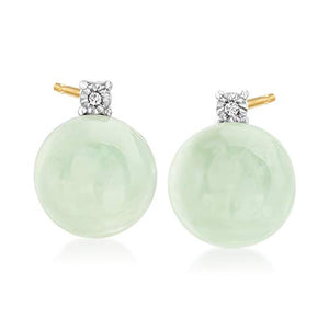 Serene 10mm jade rounds are topped with glimmering diamond accents in white rhodium for a hint of glow. Crafted in 18kt yellow gold over sterling silver. Post/clutch, diamond-accented jade earrings. Each Ross-Simons item arrives in a fine jewelry presentation box. Shop Ross-Simons jewelry risk-free as all items include a 30-day, 100% money-back guarantee. Color: Gold.