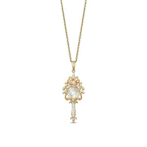 Discover the magic of love and envision a future together with the Jewelili Enchanted Disney Fine Jewelry 14K Yellow Gold 1/10 Cttw Diamond with Mother of Pearl Belle Mirror Pendant. This officially licensed Disney jewelry piece draws inspiration from Beauty and the Beast's enchanting mirror, offering a beautiful symbol of lasting love and commitment.
