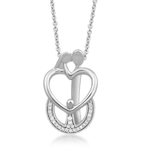 Celebrate your beautiful family with this Jewelili Diamond Parents with One Child Family Pendant Necklace.