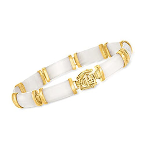 Here, 16x8mm white jade cabochons are capped by 18kt yellow gold over sterling silver, while the box clasp features the Chinese symbol for "good fortune." Double figure 8 safety. White jade Chinese symbol bracelet. Each Ross-Simons item arrives in a fine jewelry presentation box. Shop Ross-Simons jewelry risk-free as all items include a 30-day, 100% money-back guarantee. Color: White Jade.