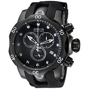 Invicta Men's Reserve Venom 53.7mm Black Stainless Steel Chronograph Quartz Watch with Black Silicone Strap, Black (Model: 6051)
