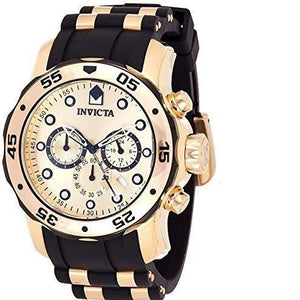 With a bold design, this Invicta Men's Pro Diver Scuba 48mm Gold Tone Stainless Steel Chronograph Quartz Watch with Black Silicone Band, Black/Gold (Model: 17885) chronograph has a poised and calm ambience that’s sure to have you looking twice.
