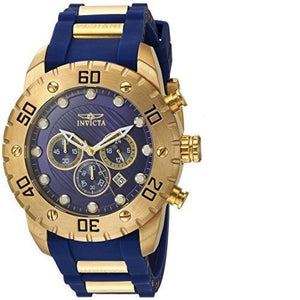Invicta Men's Pro Diver Scuba 50mm Gold Tone Stainless Steel and Blue Polyurethane Chronograph Quartz Watch, Gold/Blue (Model: 20280)