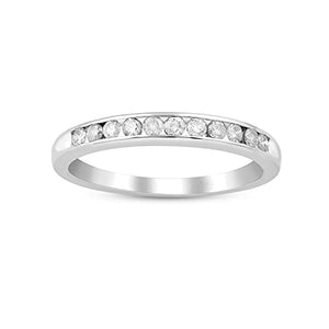 Jewelili Sterling Silver 1/4 Cttw Natural White Round Cut Diamond Band Ring