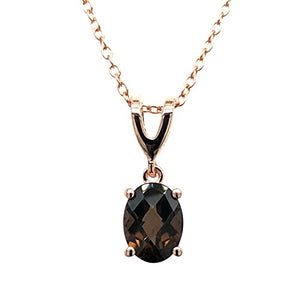 LeVian 14K Rose Gold Plated .925 Sterling Silver Oval Checkerboard Cut Brown Smoky Quartz V Bail Drop Pendant Necklace with Cable Chain - 18”