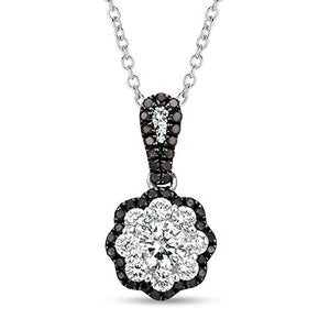 Features of LeVian 14K White Gold 1/2 Cttw White and Black Diamond 18” Flower Halo Cluster Pendant Necklace (Fancy Black & G-H Color, VS2-SI1 Clarity)