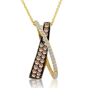 Features of LeVian 14K Yellow Gold 1/2 Cttw Chocolate Diamonds & 1/6 Cttw White Diamond Crossover X Pendant Necklace (Fancy Brown/G-H Color, VS2-SI2 Clarity)- 18”