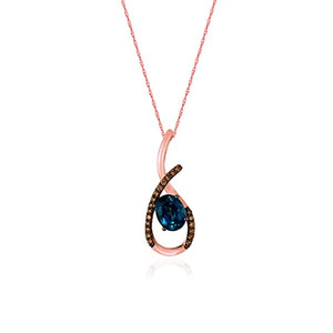 Unleash the power of sophistication and timeless beauty with the LeVian Blue Topaz and Diamond Pendant in 14K Rose Gold. This exquisite piece from the Le Vian Chocolatier collection is not just jewelry; it's a masterpiece that captures the essence of luxury and artistry.