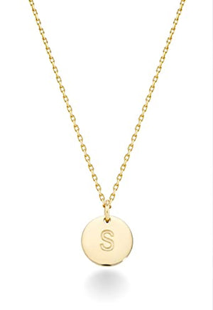 Miabella 925 Sterling Silver or 18K Yellow Gold Over Silver Round Initial Pendant Necklace for Women 18 + 2 Inch Chain, Dainty Letter Necklace Made in Italy (S, yellow gold plated silver)