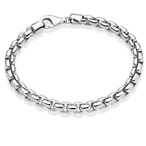 Add style to a basic look with this solid and heavy 6.5mm sterling silver box link bracelet. Polished interlocking square links form a round, thick chain for a simple and luxurious design. It is strong and durable for daily wear and has a comfortable fit. Modern and elegant with both casual and formal outfits, wear this bold and unique bracelet solo for an everyday polished look or stack with other favorites for a cool fashion statement. An elegant unisex design that takes you from day to night with style. Strong, smooth and comfortable on the wrist. Made in Italy.