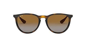 Ray-Ban Erika sunglasses, Featuring round pilot lenses, these oversized round Asian Fit sunglasses are designed to fit people with higher cheekbones and wider nose bridges. Erika RB4171F sunglasses feature prescription-ready (Rx-able) plastic lenses that are treated with a 100% UV protective coating. Ray-Ban Erika RB4171F sunglasses available in a variety of colors and lenses include polarized, gradient and solid lenses making these sunglasses ideal for both sunny and hazy days. These Ray-Ban unisex sunglasses include a 100% nylon frame. The bridge measures 18 mm, and the arms measure 145 mm. These sunglasses also feature a lens width of 54 mm.