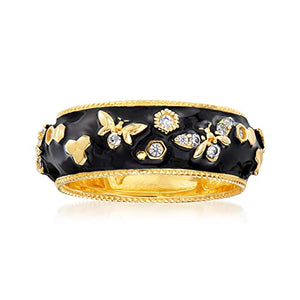 A captivating addition to any outfit. 5/16" wide. Black enamel and white topaz bumblebee ring. Each Ross-Simons item arrives in a fine jewelry presentation box. Shop Ross-Simons jewelry risk-free as all items include a 30-day, 100% money-back guarantee.