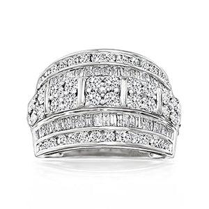 • DIAMONDS AND STERLING SILVER — 2.00 ct. t.w. baguette and round diamond multi-row ring in sterling silver. Round brilliant-cut and baguette diamonds. Polished finish. 5/8 in. wide. Size 5.