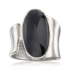 Embrace sophistication and stand out effortlessly with the Ross-Simons Black Onyx Wrap Ring in sterling silver. This striking piece features a 20x10mm oval black onyx cabochon, exuding timeless elegance and versatility. At 3/4" wide, it's an attention-grabbing accessory that complements any ensemble.