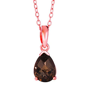 LeVian 14K Rose Gold Plated .925 Sterling Silver Pear Shape Checkerboard Cut Brown Smoky Quartz Teardrop Pendant Necklace with Cable Chain - 18”