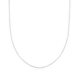 • 14 KT WHITE GOLD — .7mm 14kt white gold rope chain necklace. Polished finish. 16 in. long 0.7 wide. 0.4 grams. Springring clasp.